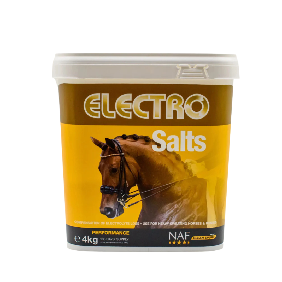 NAF Electro Salts to wysoko skoncentrowana formuła opracowana w celu uzupełnienia kluczowych elektrolitów utraconych w wyniku pocenia się. Produkt wspiera prawidłową pracę mięśni, utrzymanie równowagi wodno-elektrolitowej oraz zapobiega zmęczeniu spowodowanemu niedoborem sodu, potasu, wapnia i magnezu. Regularne stosowanie Electro Salts pomaga chronić organizm przed skutkami odwodnienia oraz przeciążeń treningowych, wspierając kondycję konia w okresach intensywnego wysiłku i wysokich temperatur.