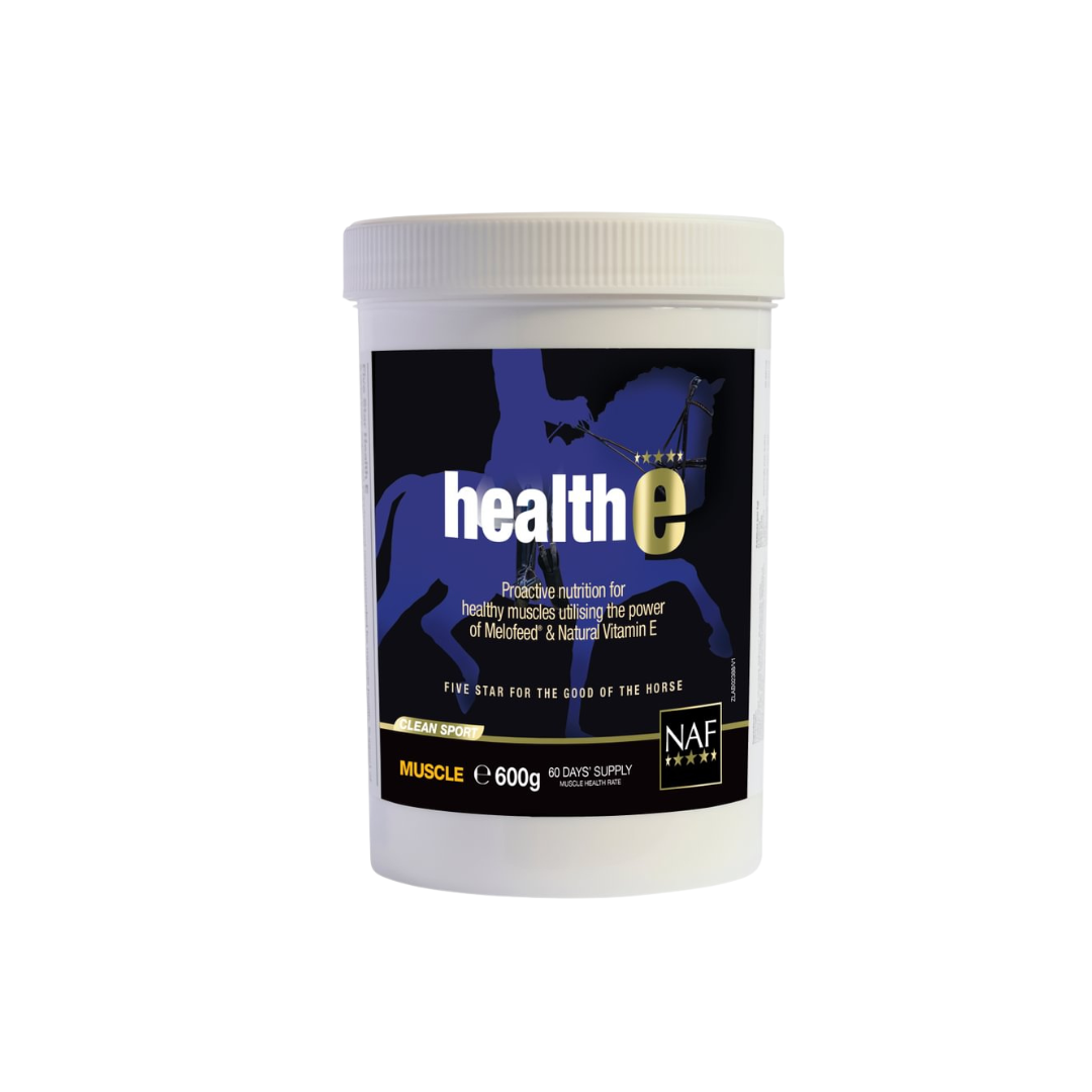 NAF Health-E to zaawansowany suplement żywieniowy wspierający zdrowie i prawidłowe funkcjonowanie mięśni u koni i kucy. Preparat został opracowany z myślą o zwierzętach wymagających silnego wsparcia antyoksydacyjnego – zarówno przy obciążeniu mięśni, jak i w przypadku obniżonego poziomu witaminy E.
