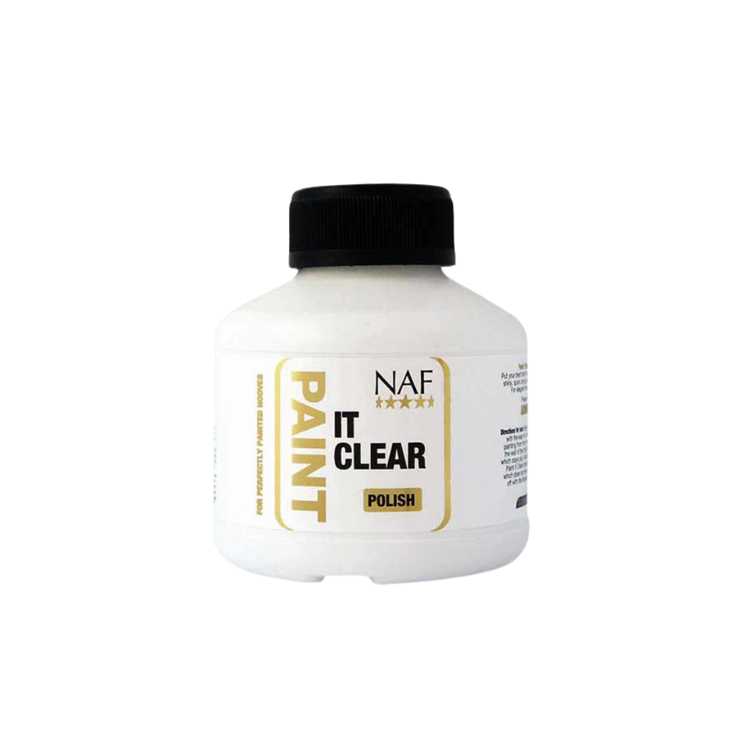 NAF Paint it Clear – lakier do kopyt, który nadaje kopytom koni wyjątkowy, intensywny połysk. Dzięki specjalnej formule zapobiega osadzaniu się kurzu i piasku, dzięki czemu efekt utrzymuje się nawet do 3 dni. Idealny na zawody, pokazy i do codziennego użytkowania.