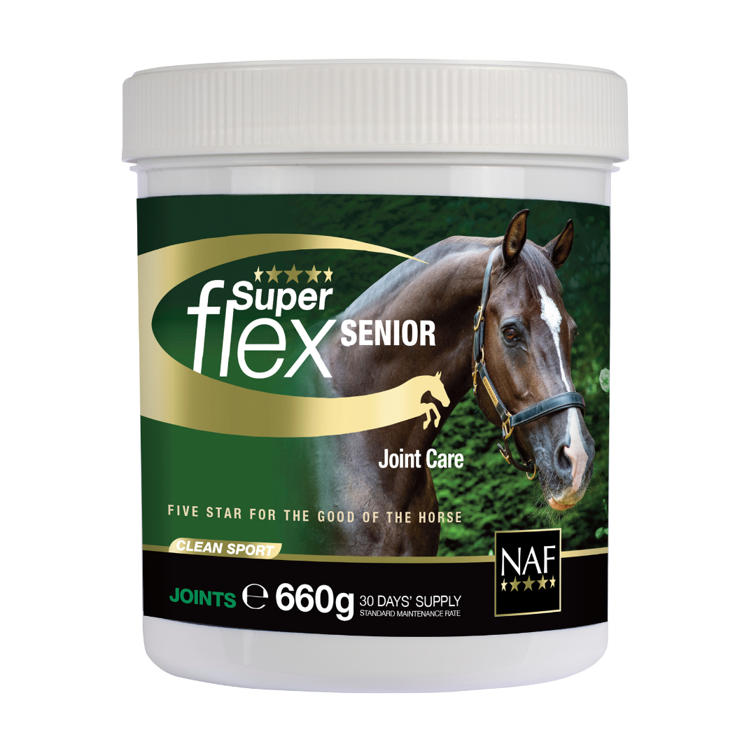 NAF Superflex Senior to kompleksowe wsparcie dla utrzymania elastyczności i sprawności ruchowej – przez całe życie konia.